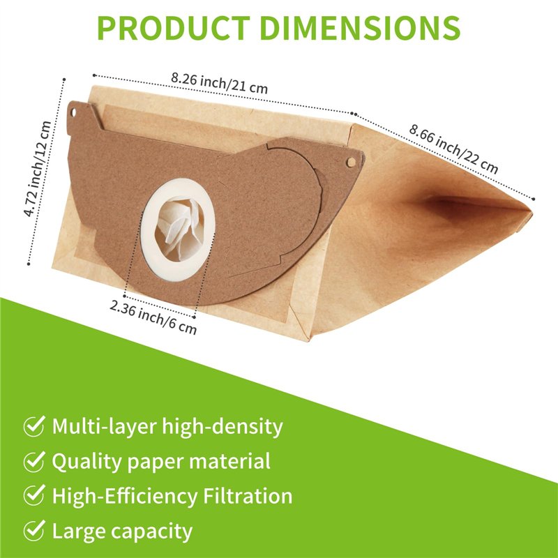 Ces 10 sacs de remplacement pour aspirateur Karcher sont conçus pour offrir une performance optimale et une filtration supérieure, garantissant un air propre et une durée de vie prolongée de votre aspirateur.