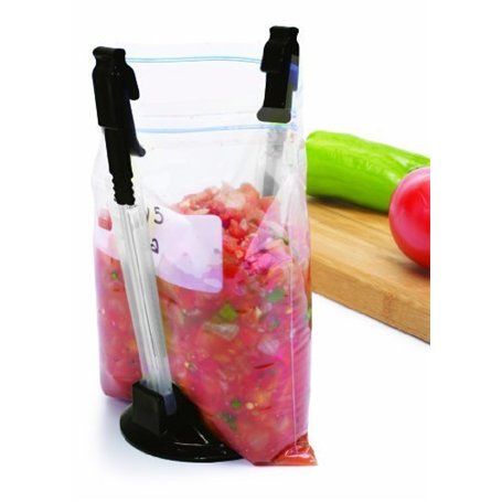Ouvrez vos sacs de rangement facilement avec le Jokari Baggy Rack Pro Ouvre-sac de rangement avec support.
